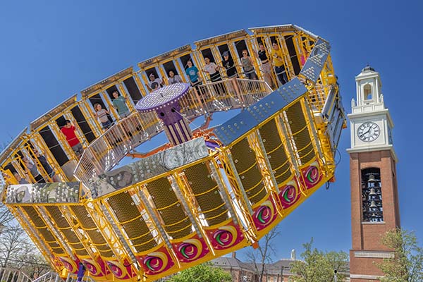 A triptych of images showcase recent events in CEC including the PArty on the Patio, a classroom activity and the STEM career fair.