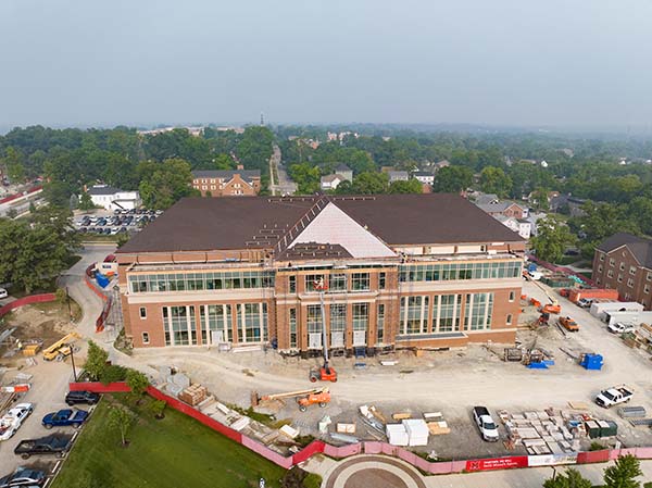 Photo of front of the art museum with text stating our new exhibitions are open Jan 30-Jun 8